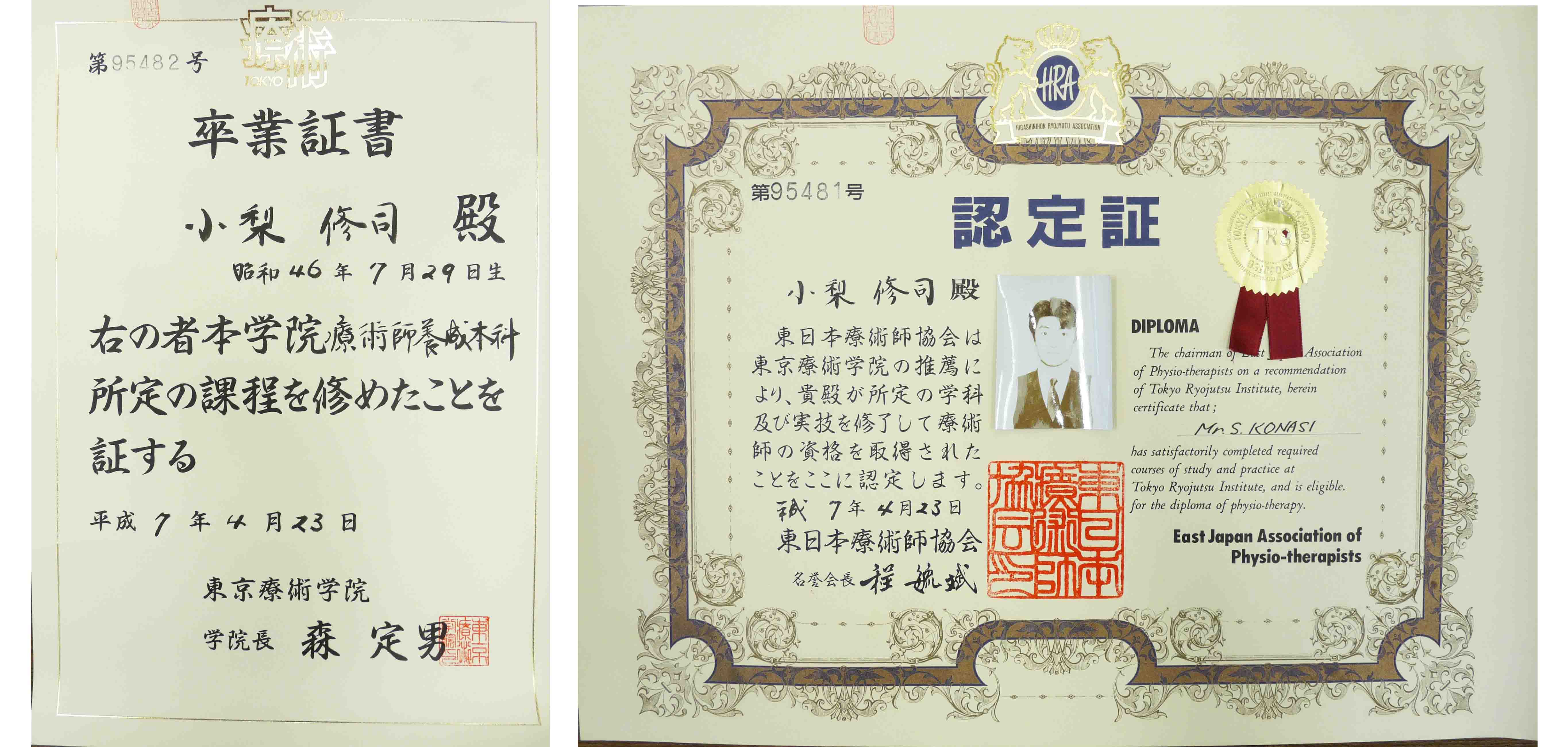 基礎医学・トリガーポイント・カイロプラクティックの手技、理論を習得し、日本カイロプラクティック医学協会(JACM)認定カイロプラクターを取得。